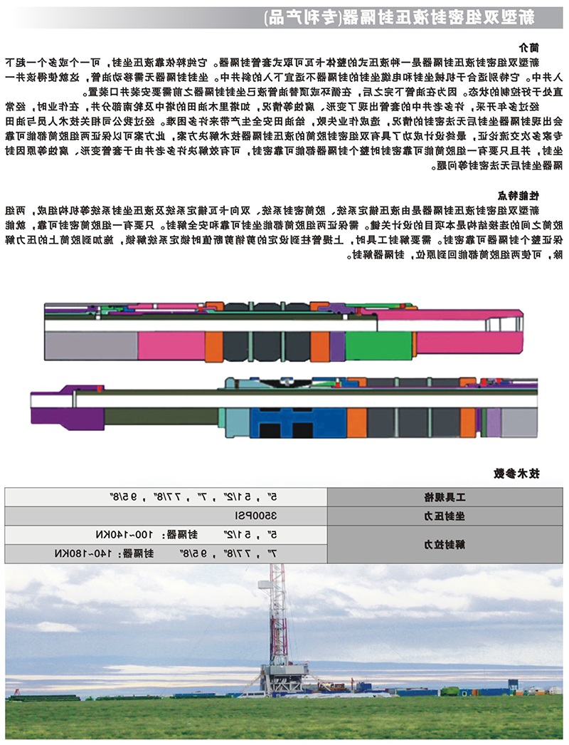 新型双组密封液压封隔器(专利产品)